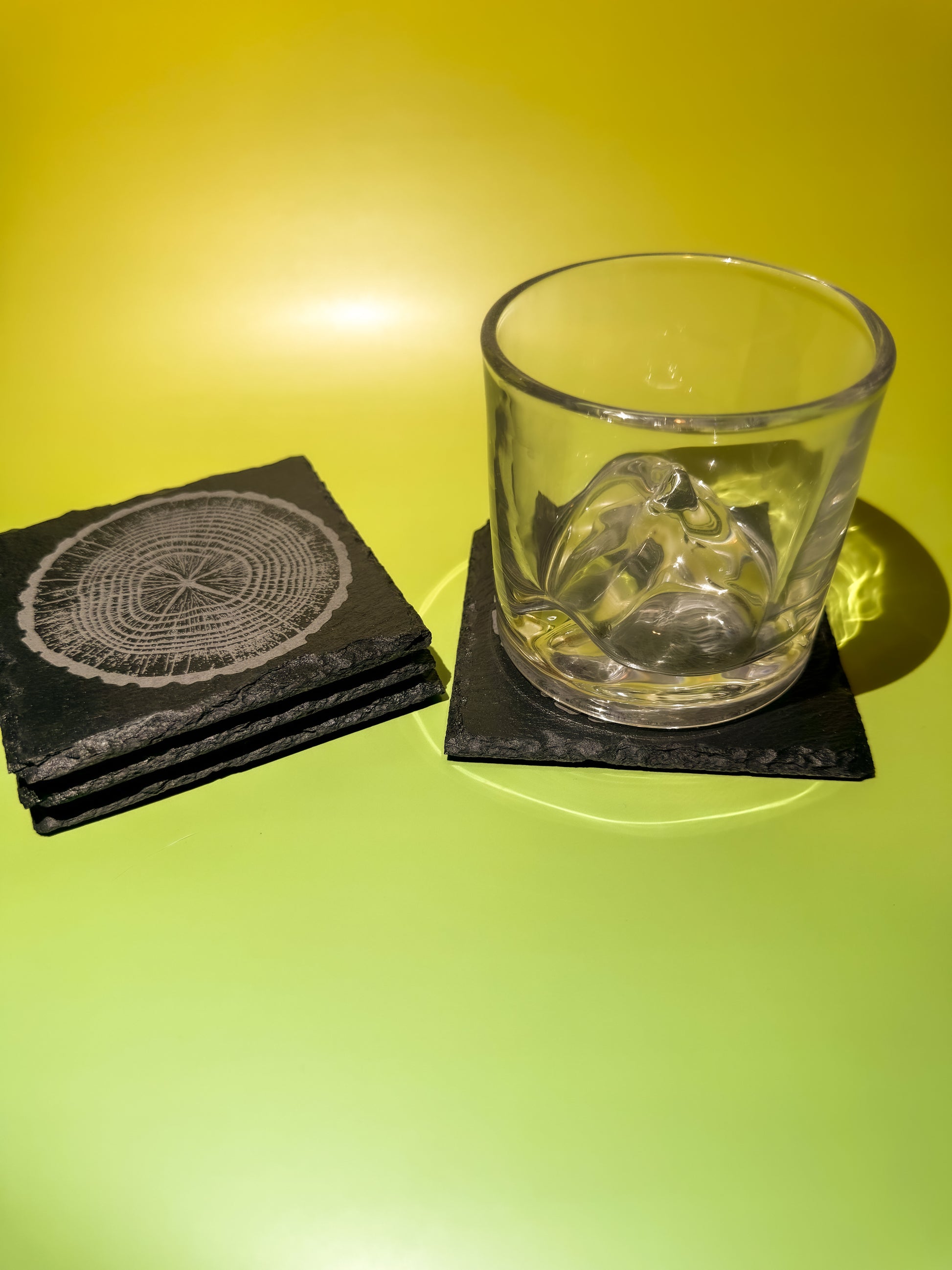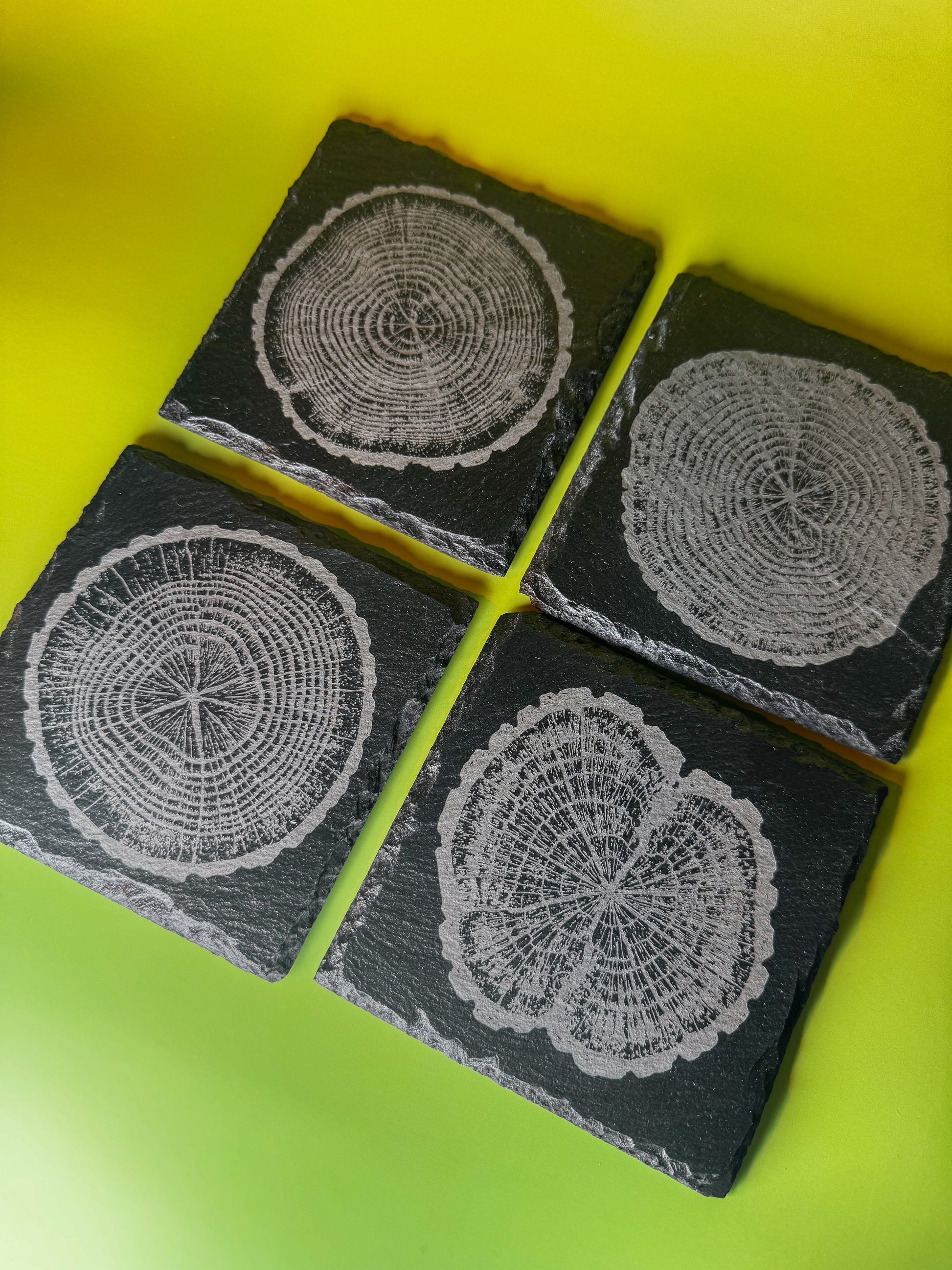- Set of 4 natural slate coasters (each with its own tree-ring engraving)
